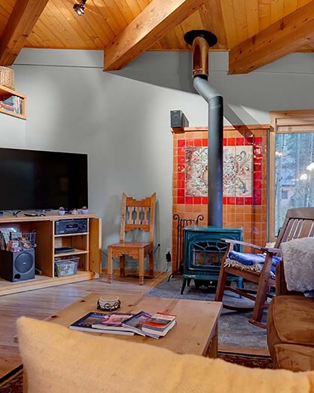 Cinco Hermanas is a Vacation Rental by Owner, offering bookings throughout the year. It is within walking distance of the ski slopes, located within the Village of Taos Ski Valley. The home is ideal for 2 families with bedding to sleep up to 10 people. Upstairs you will find two queen bedrooms with adjoining double bathrooms. The kitchen living and dining area is open plan, cozy and light with many windows and high ceilings. A wood-burning stove in the main living area with supplied wood will keep you cozy at nights. The lower floor is ideal for the kids in your group with two bunk rooms that sleep up to 6 in twin bunk beds. A full bathroom with walk-in shower and washer dryer room are between the two bedrooms. The living area has a dining table, couch and TV. To get to the ski slopes you walk 100 yards to the top of Pioneer beginners area and start skiing!